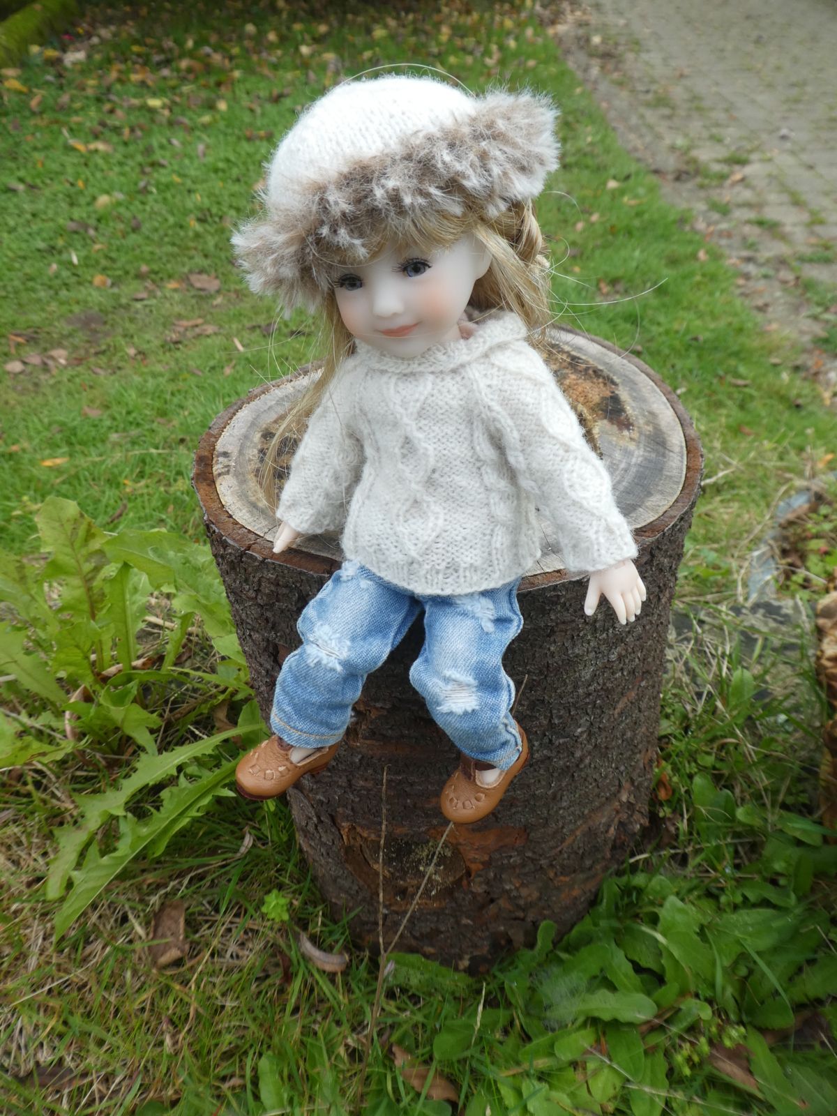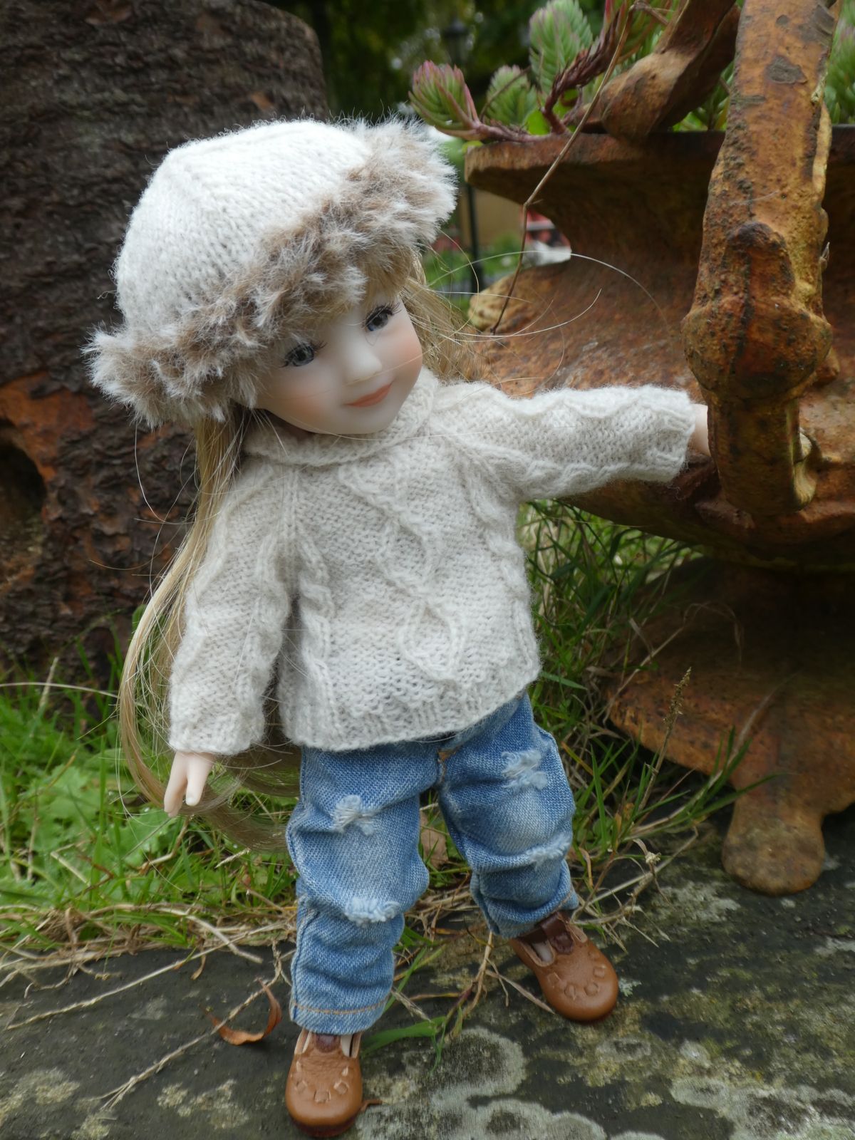 Et voici un petit modèle pour les jours qui se rafraîchissent... je l'avais fait il y a un moment déjà mais il fallait que je vérifie le tuto; d'où le numéro 6 (H 6) (le H7 étant le pull rayé ou voiture et le H 8 le pull ours que vous avez découvert dans un post précédent)...